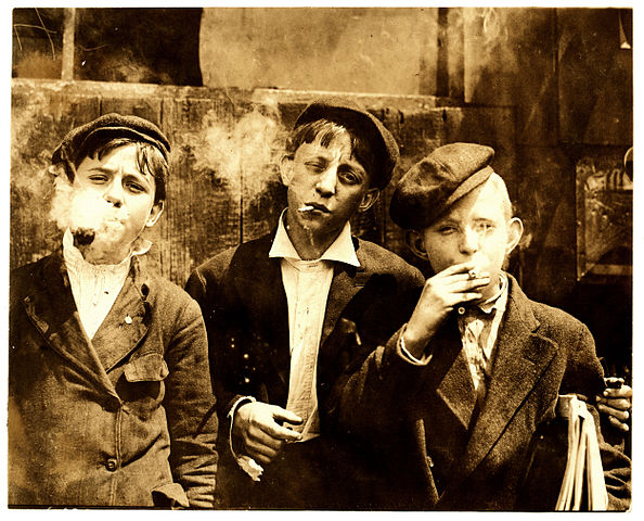 Foto van Lewis Hine, Newsies smoking at Skeeter’s Branch, St. Louis, 1910. Licensed under Public Domain via Wikimedia Commons